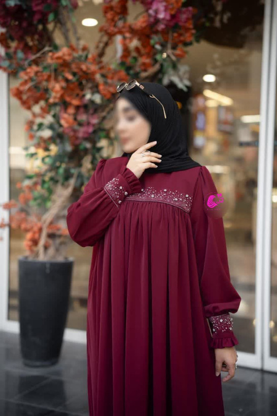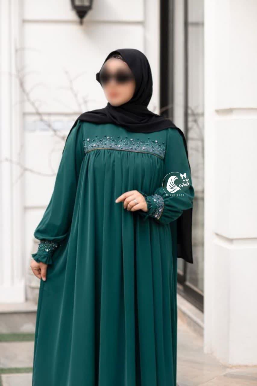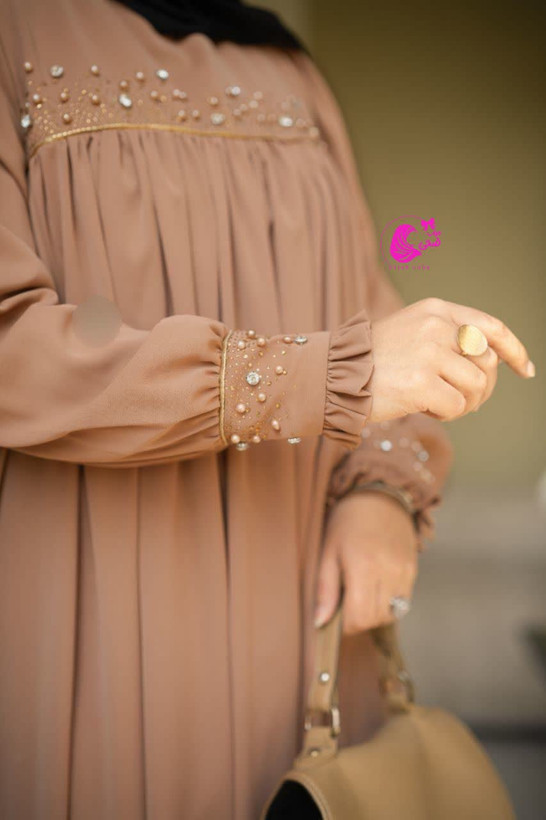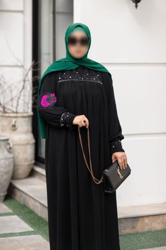 قسمت جلوی سینه و مچ ،جواهردوزی و نگین کاری شده