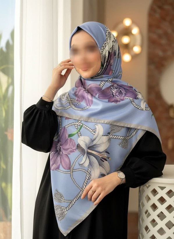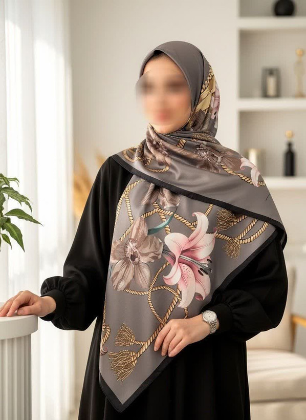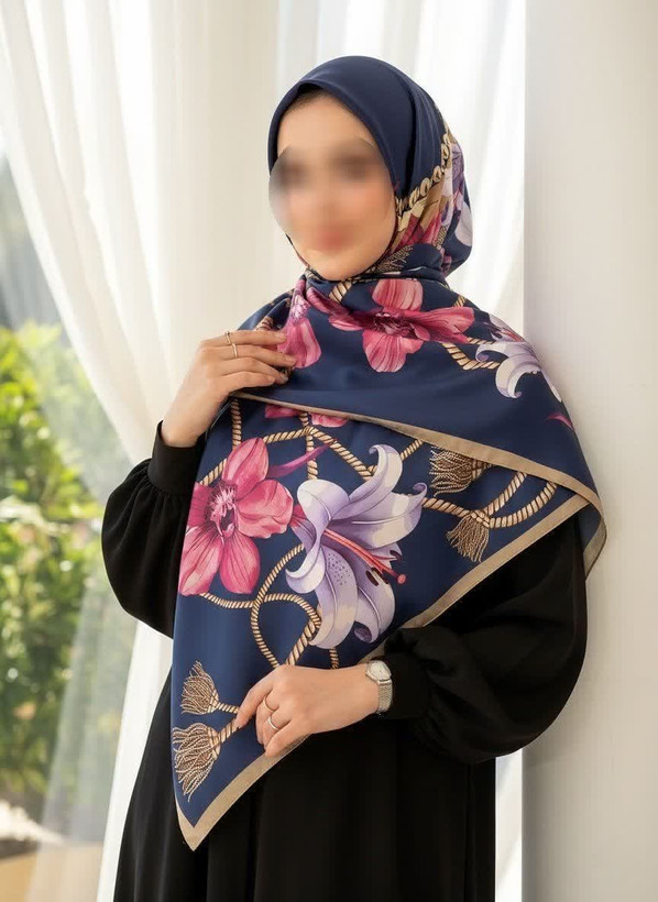 روسری ساتن ابریشم گل شیپوری